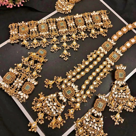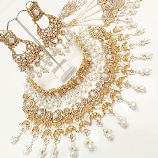Zircon Manjus Gold Plated Complete Bridal Package / Indian Pakistani Bridal Shaadi Wedding Jewelry/ Sabyasachi Bollywood