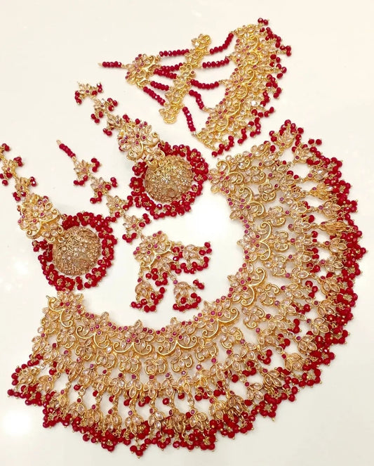 Heavy Bridal Jewellery Set / Indian Pakistani Set with Jhumar and Teeka Perfect for Wedding Wear