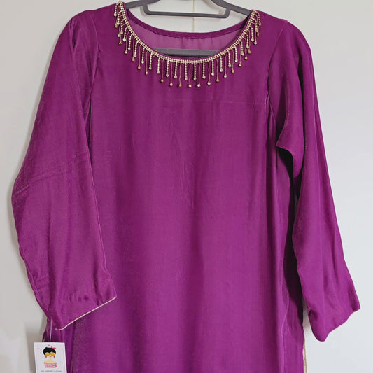 Eid Collection 2025 || Dark Purple Plain Kurta for Women