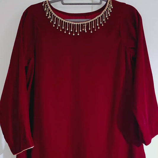 Eid Collection 2025 || Blood Red Plain Kurta for Women