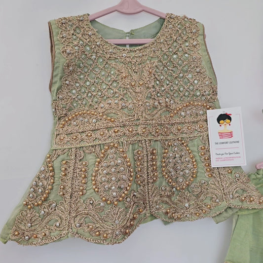 Eid Collection 2025 | Baby Girl Bottle Green Embroidered 3Pc Kameez Shalwar for Eid & Party wear