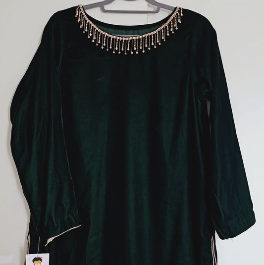 Eid Collection 2025 || Bottle Green Plain Kurta for Women