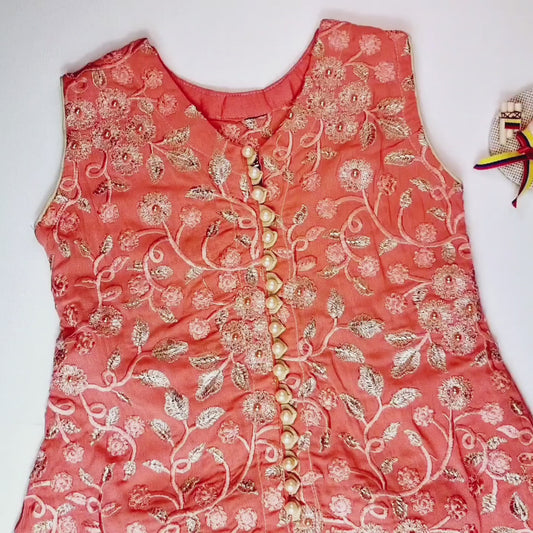 Indian Pakistani Dress | Pink Chiffon Short Shirt and Trouser | Shalwar Kameez | Embroidered Suit Kid Ethnic Wear Perfect for Diwali & Eid