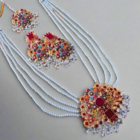 Kundan Pendant Layered Maala Set || Pakistani/ Indian Nauratan Haar