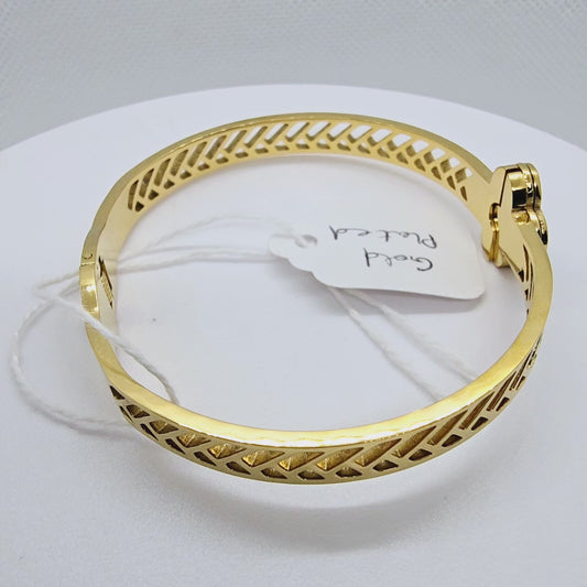 Stainless Steel Bangle 18K Gold Plated Four Leaf Clover