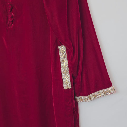 Red Fitted Velvet Pakistani/ Indian Dress (kurti)