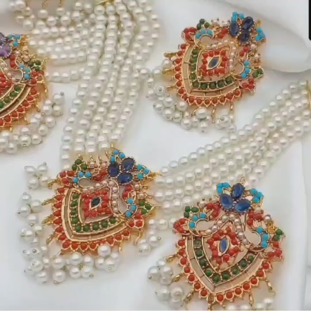 We make sure that our collection of Egyptian polki stones Long mala set With earrings in the gold plated set is beautiful, elegant & will surely galvanize you, because our products are unique, comfortable, fashion-forward & very popular for the rich look.