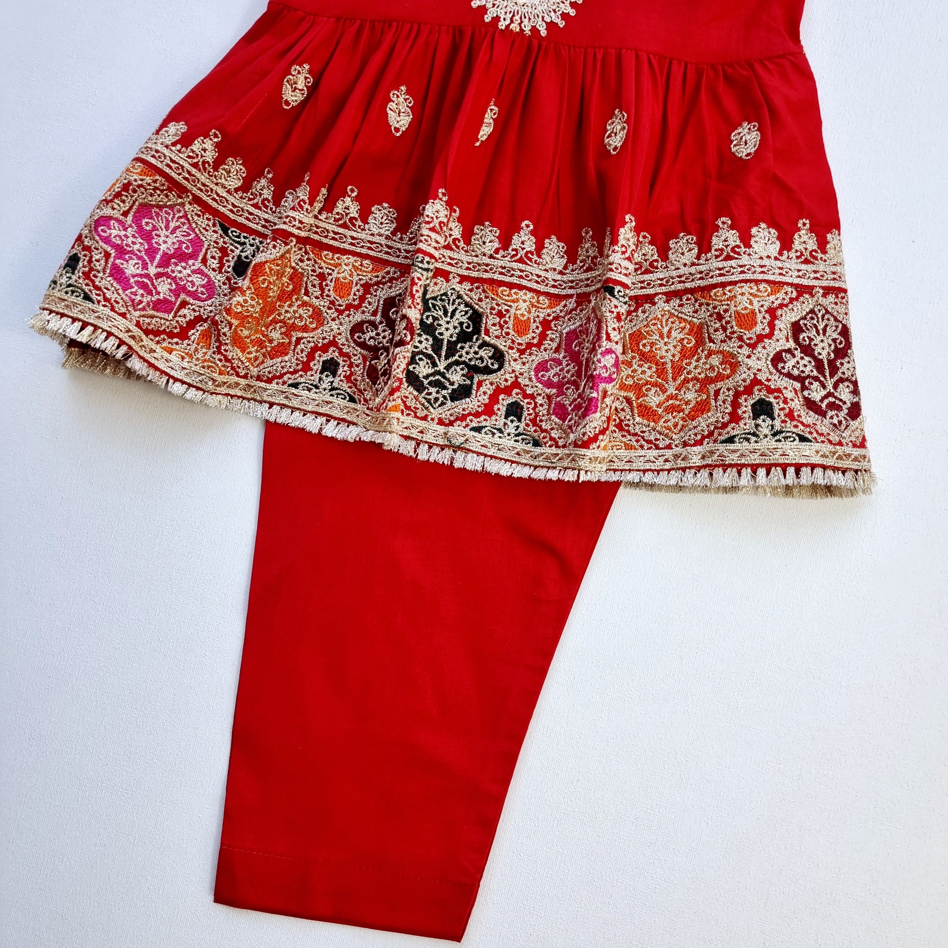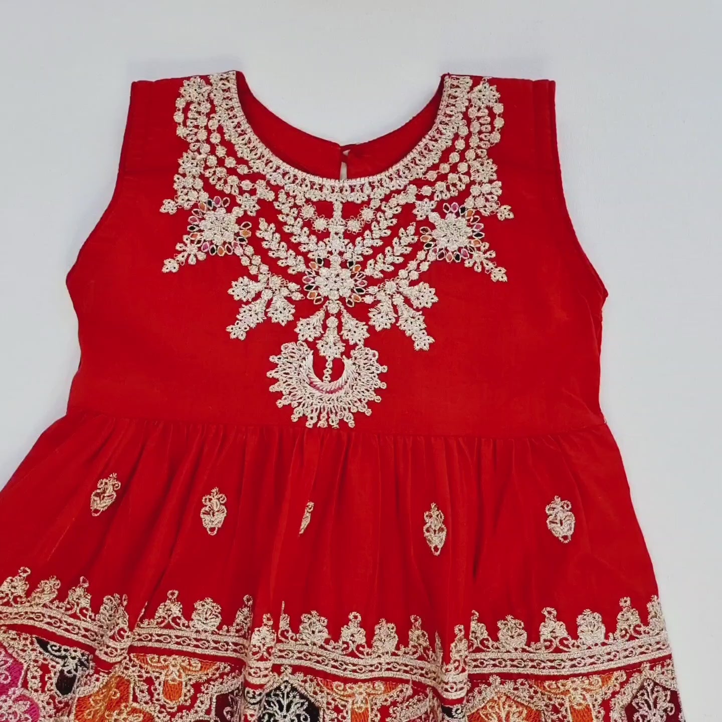 Baby Girl Embroidered Frock and Trouser || Blood Red Baby Girl Dress Perfect for Eid and Occasion Wear