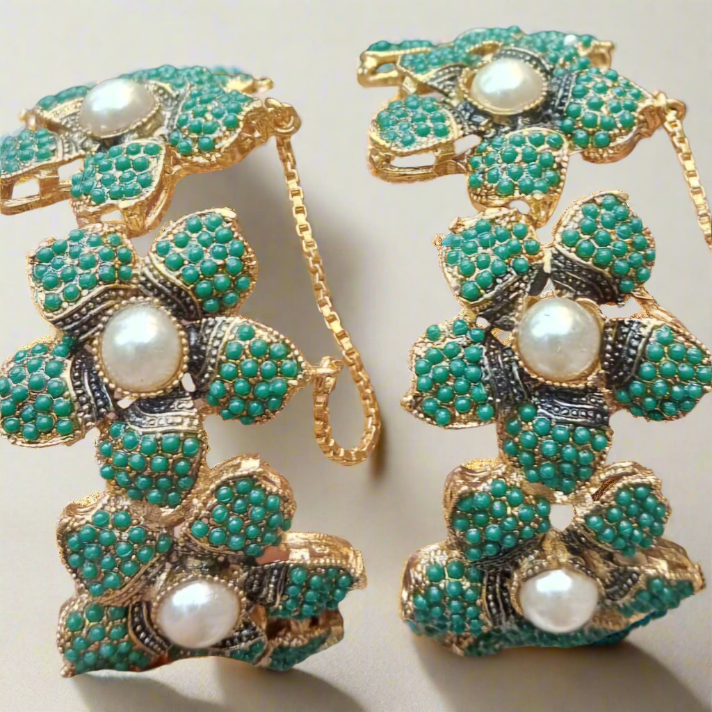 Stylish, Antique, Traditional, Vintage, Ethnic, & Elegant jewelry. Wedding Bridal Jewelry Accessories for Women and Girls. Religious style of India that is Worn across South Asia, delicate eye-catching Classic Unique Exotic Jewellery. These Exquisite and Elegant Earrings add a Traditional touch to your Ensembles. Easy to wear using a secure closure for a perfect fit. Skin-friendly, environmentally friendly. Durability with the look of fine premium quality jewelry. Wear this with your gorgeous traditional dress, saree, lehenga, or gown on any wedding, party, engagement, ring ceremony, prom, anniversary, or any festive or special occasion. Perfect Gift For Any Occasion for yourself or your loved ones. Ideal Valentine's, Birthday, Anniversary gift for wife or girlfriend.