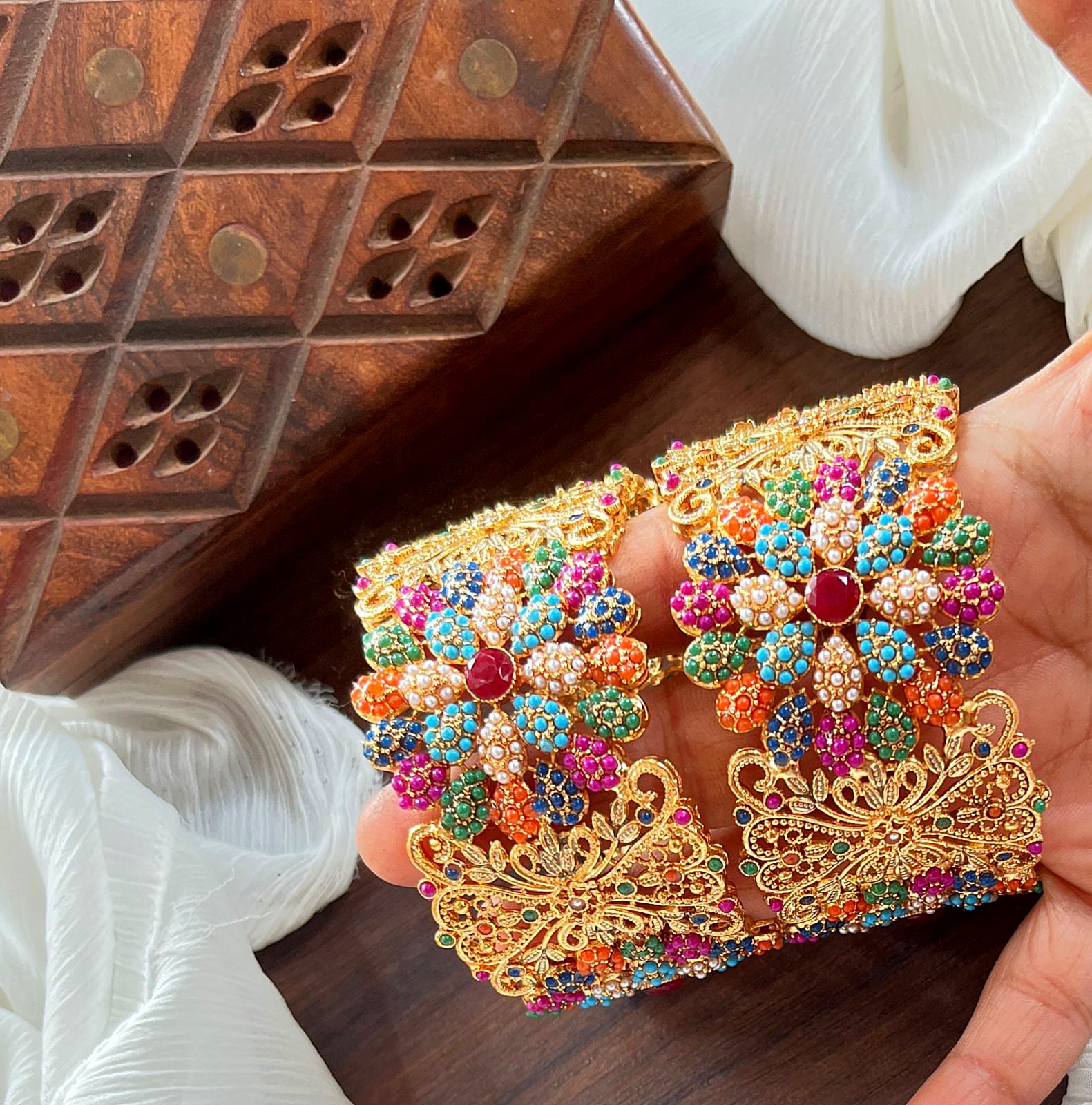 Bangle Openable Kara Set || Gold Plated Wide Kara Pair || Bangles with Zircon Stones