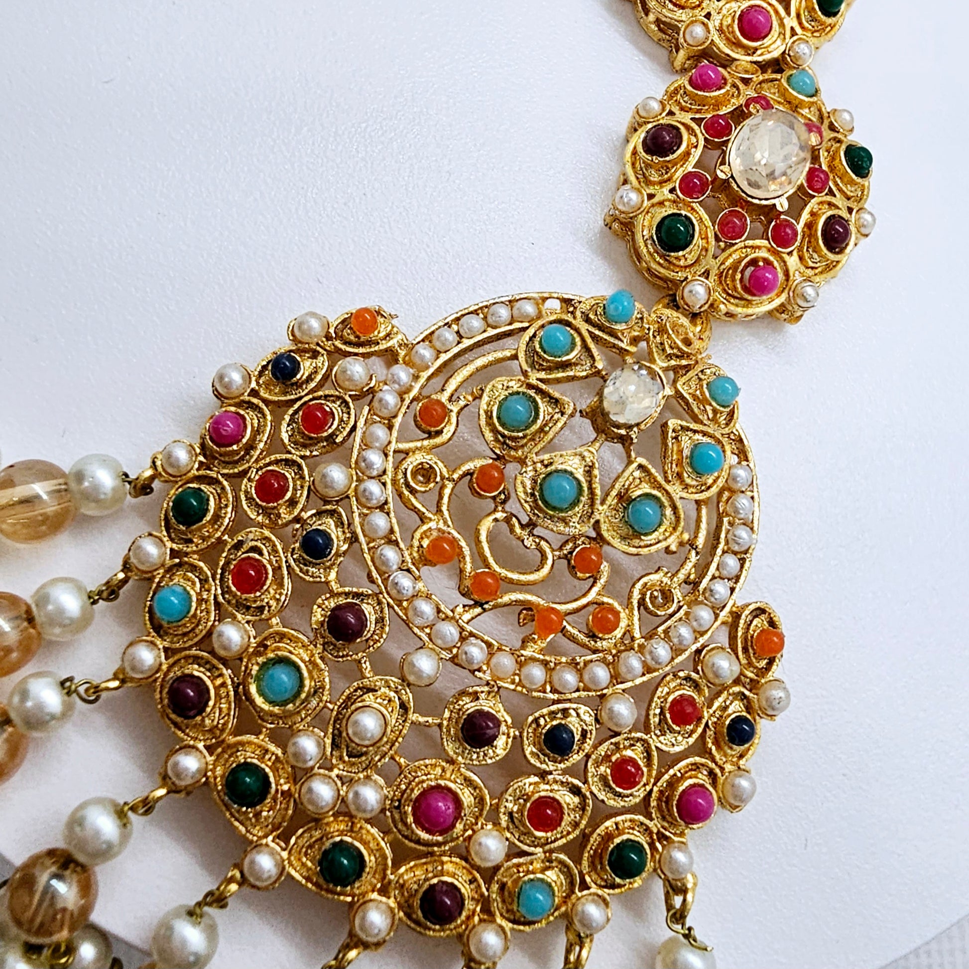 Stylish, Antique, Traditional, Vintage, Ethnic, & Elegant jewelry. Wedding Bridal Jewelry Accessories for Women and Girls. Religious style of India that is Worn across South Asia, delicate eye-catching Classic Unique Exotic Jewellery. This Exquisite and Elegant Earrings add a Traditional touch to your Ensembles. Easy to wear using a secure closure for perfect fit. Skin-friendly, environmentally friendly. Durability with the look of fine premium quality jewelry. Wear this with your gorgeous traditional dress, saree, lehenga, or gown on any wedding, party, engagement, ring ceremony, prom, anniversary, or any festive or special occasion. Perfect Gift For Any Occasion for yourself or your loved ones. Ideal Valentine's, Birthday, Anniversary gift for wife or girlfriend.
