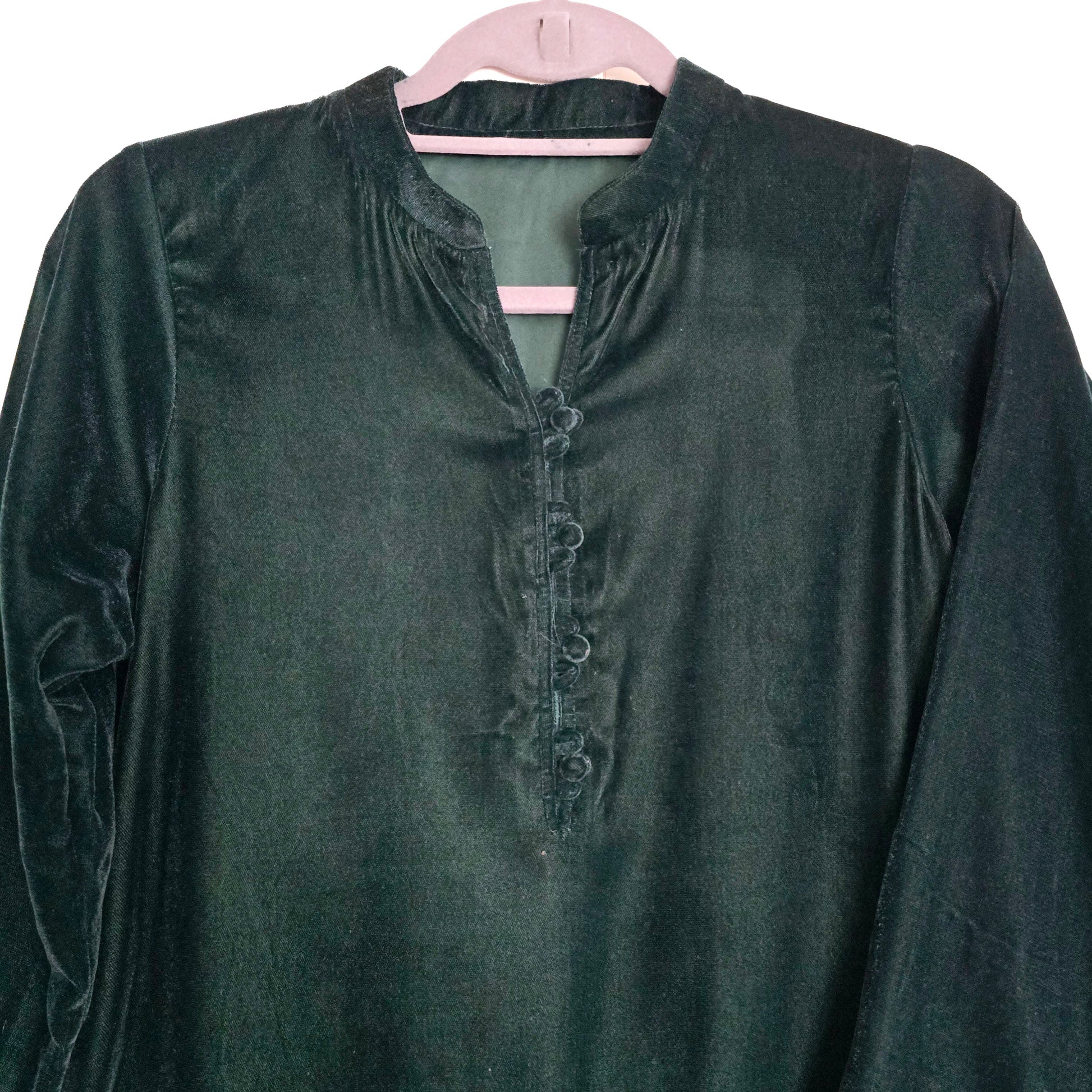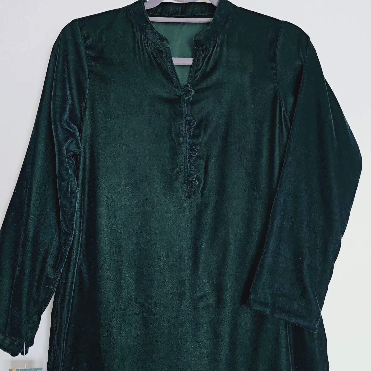 Bottle Green Velvet Kurta Partywear ,Winter Velvet Kameez, Designer Velvet Suit
