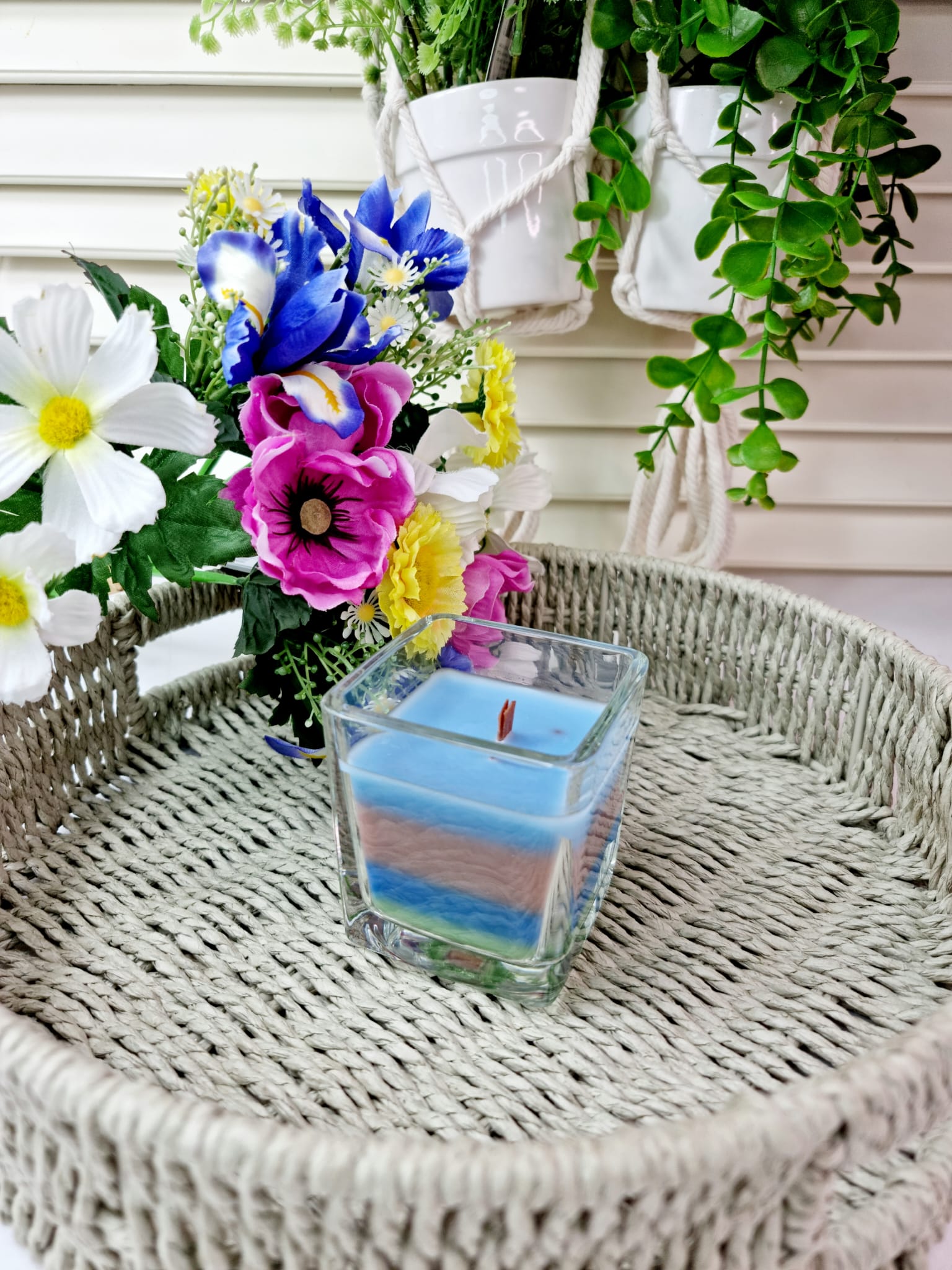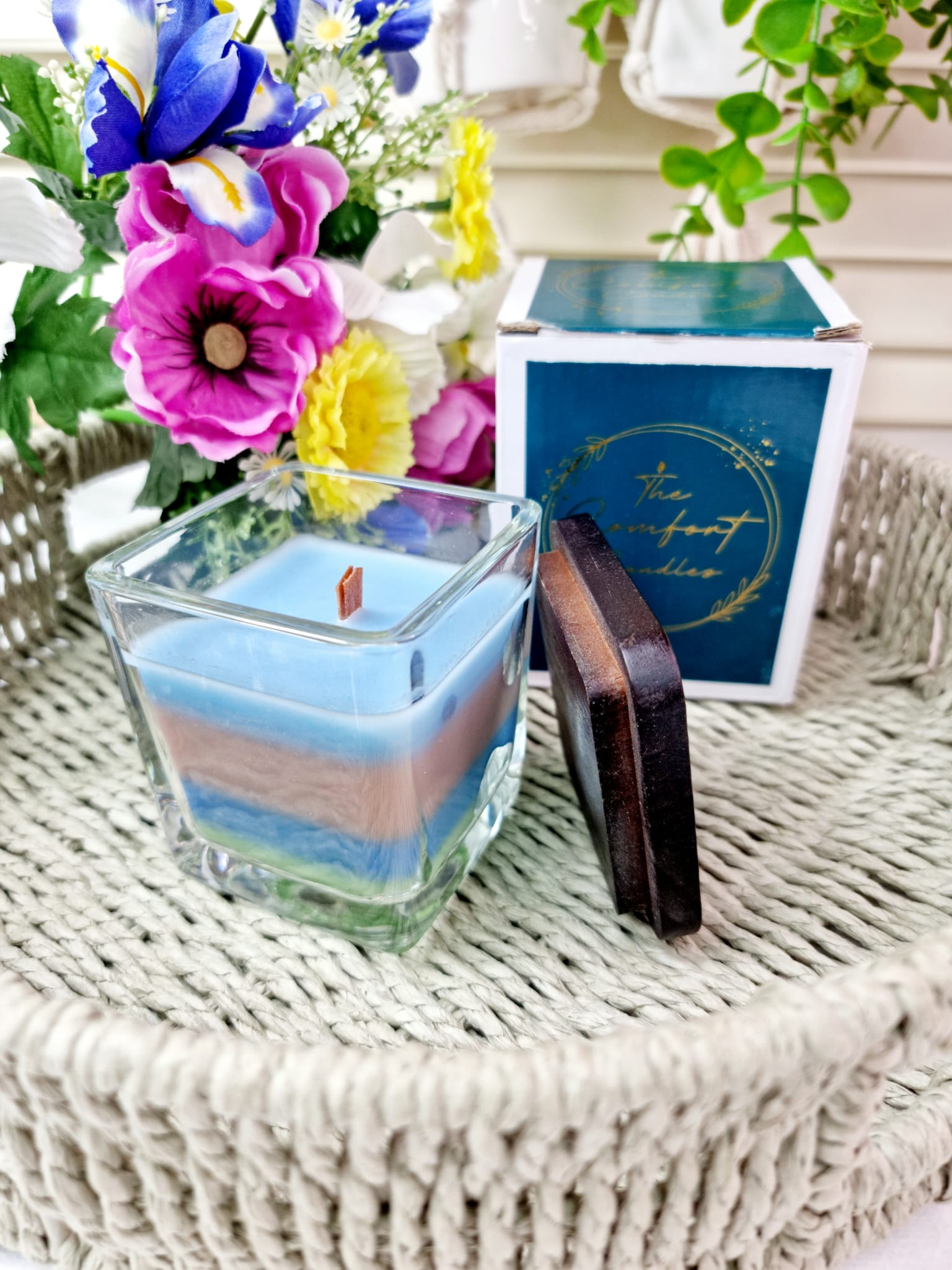 After every storm, there is a rainbow candle. Candles in square glass with tri-color wax are a perfect solution for people who value functionality as well as modern design and unique fragrances. Thanks to the two wicks, the flame of the candle is more intense.