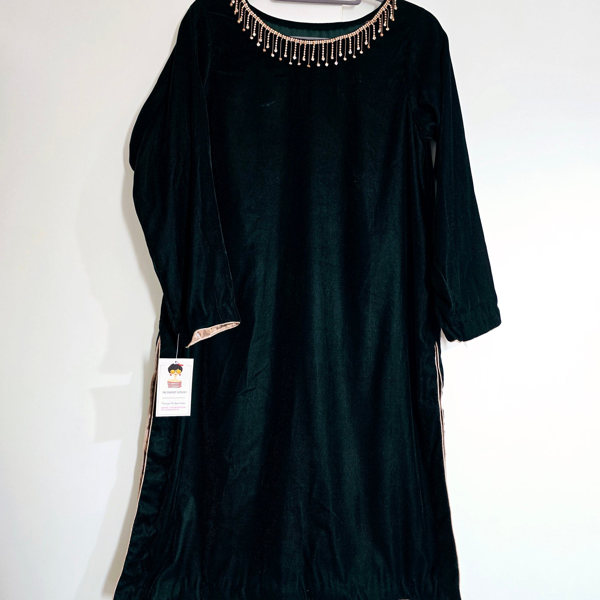Eid Collection 2025 || Bottle Green Plain Kurta for Women