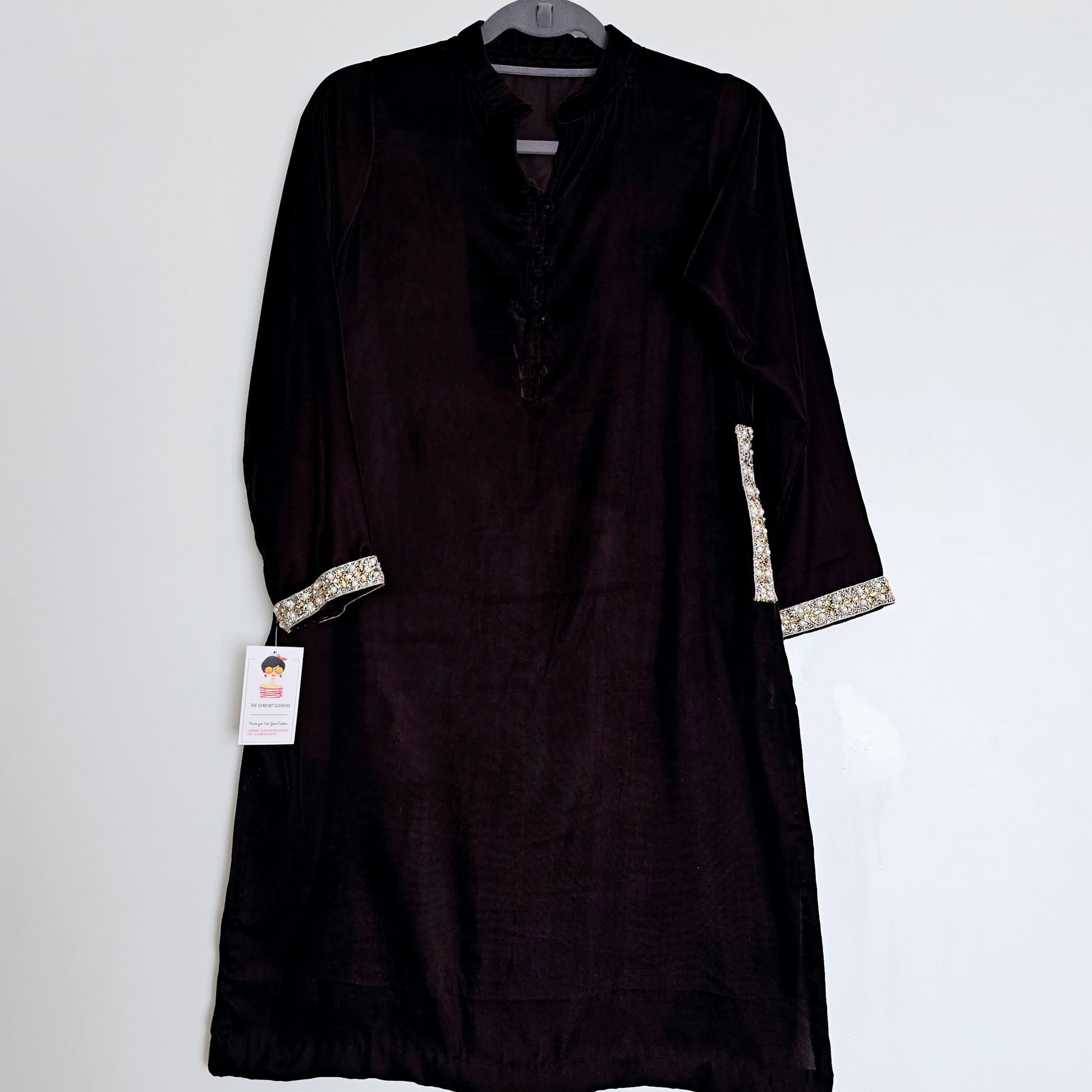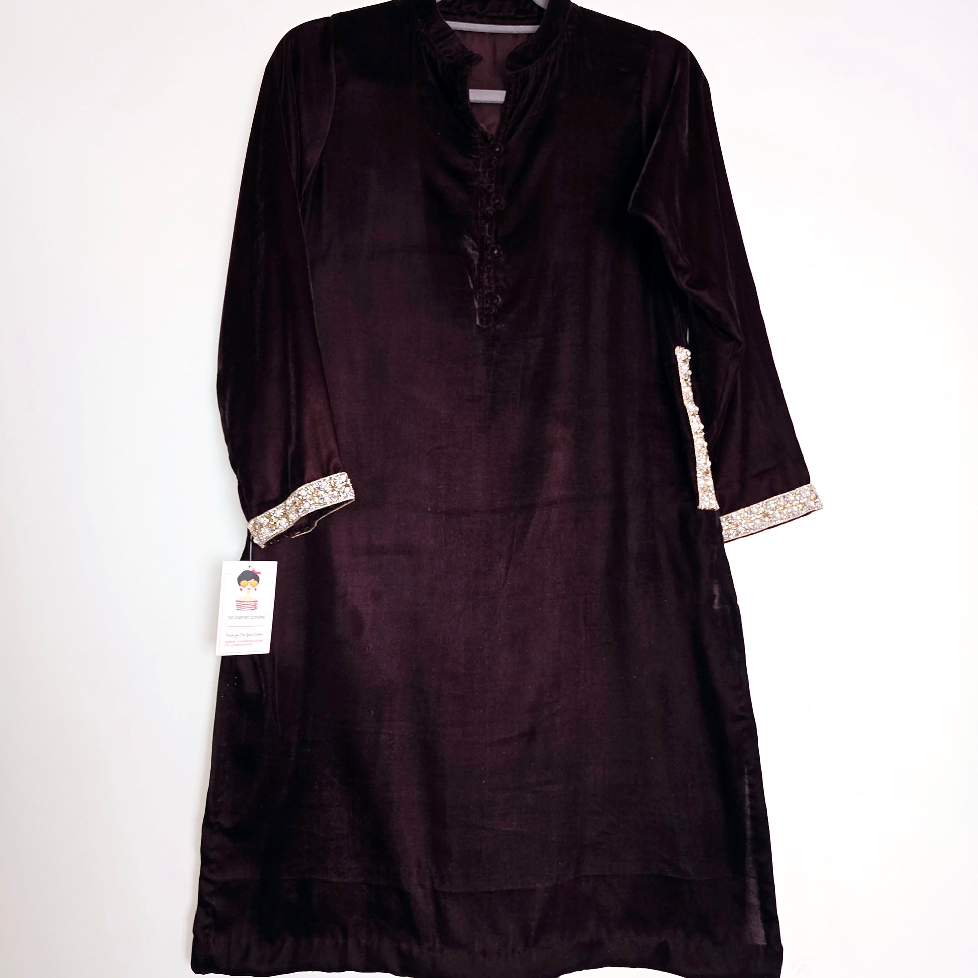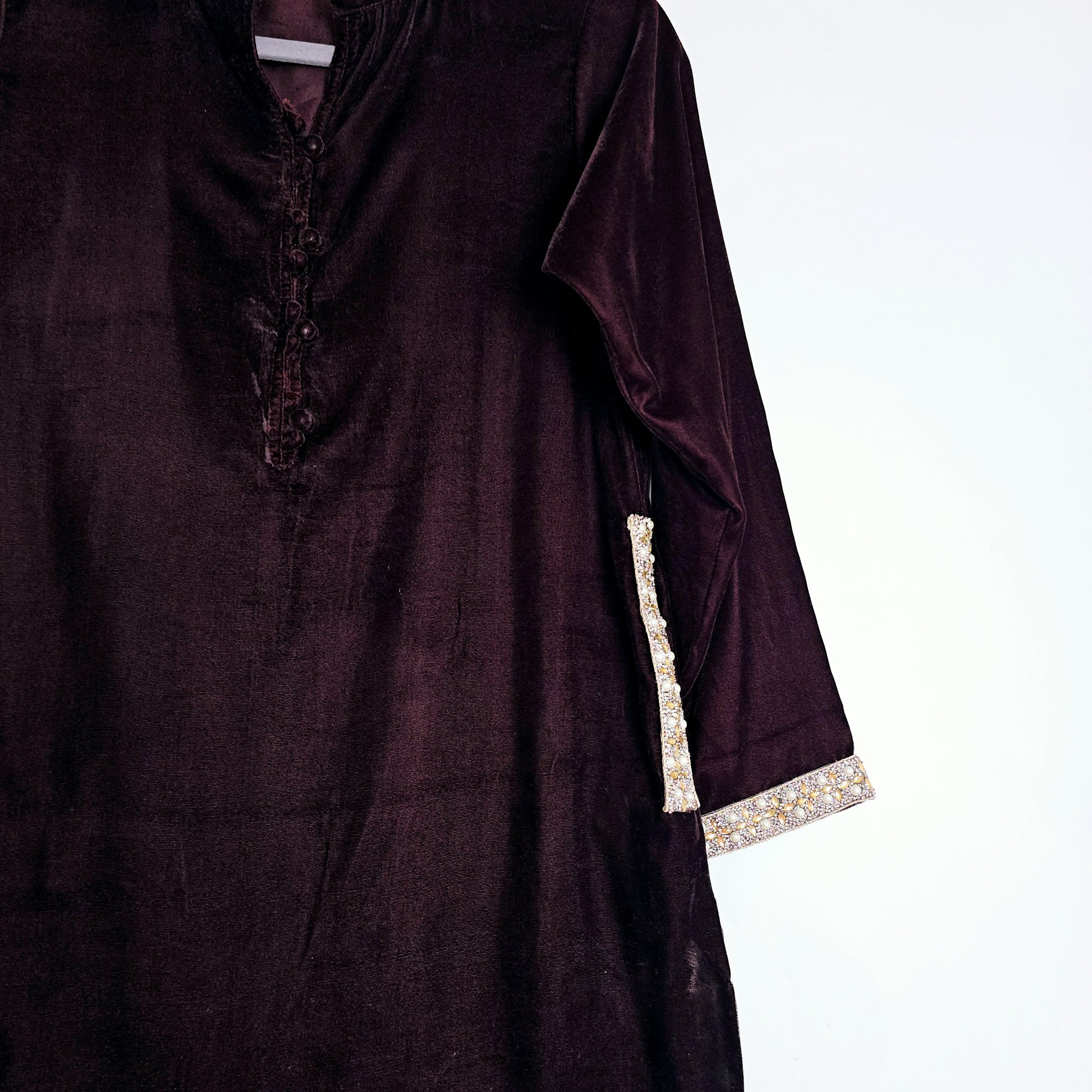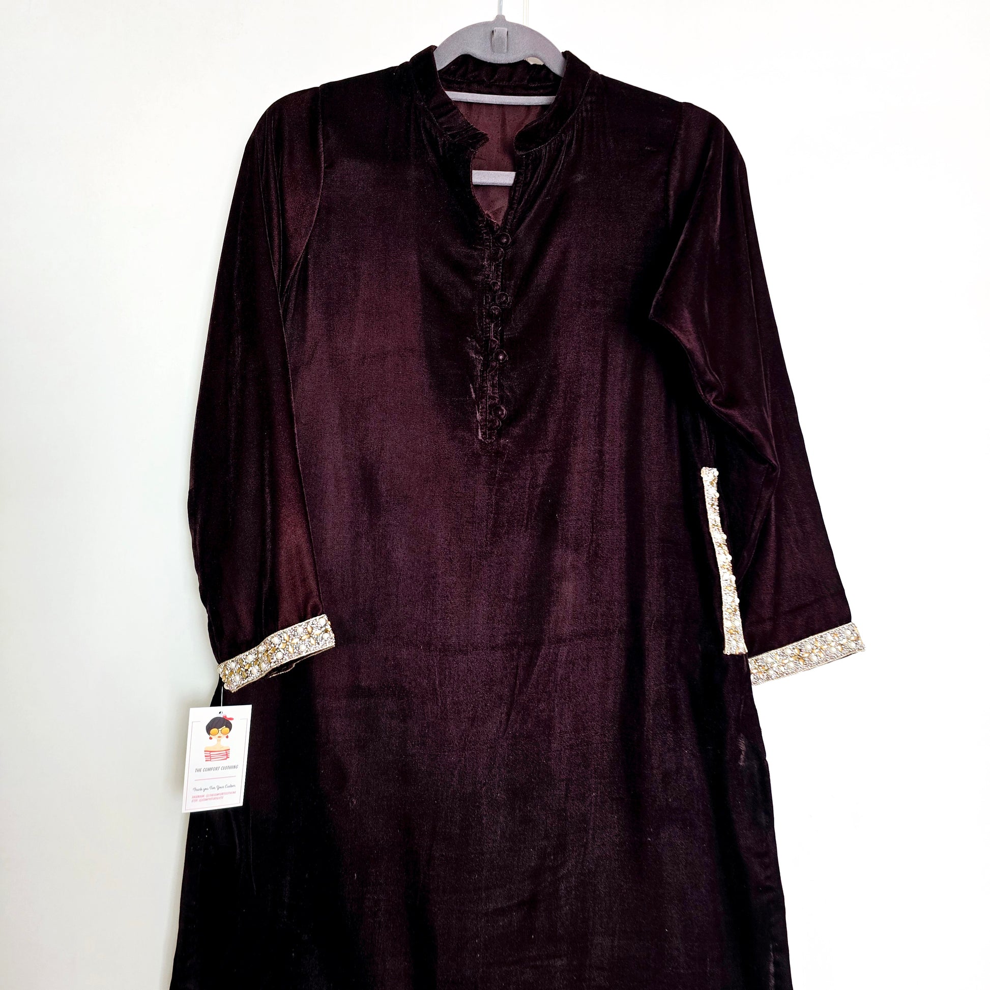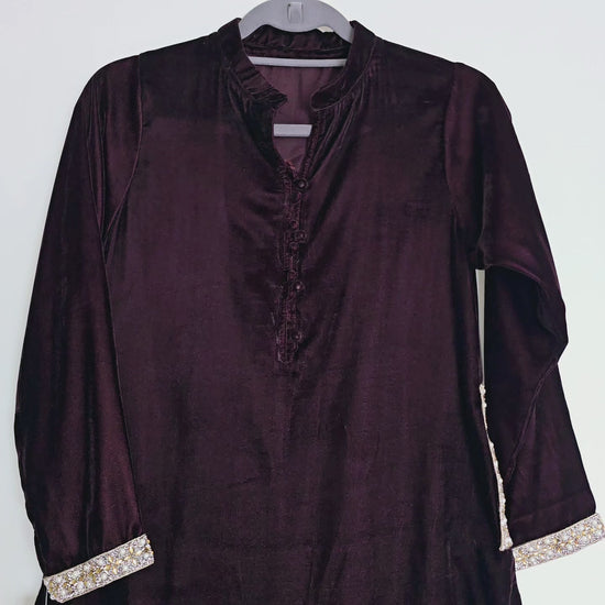 Dark Brown Velvet Kurta Partywear ,Winter Velvet Kameez, Designer Velvet Suit