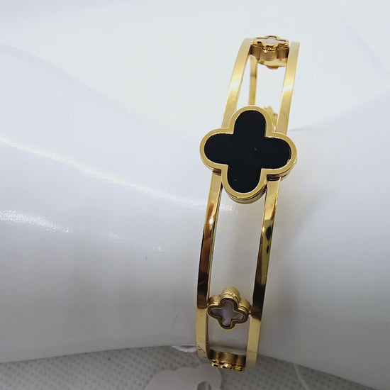 Elegant Bamboo Cuff Bangle 18K Gold Plated Stainless Steel Waterproof