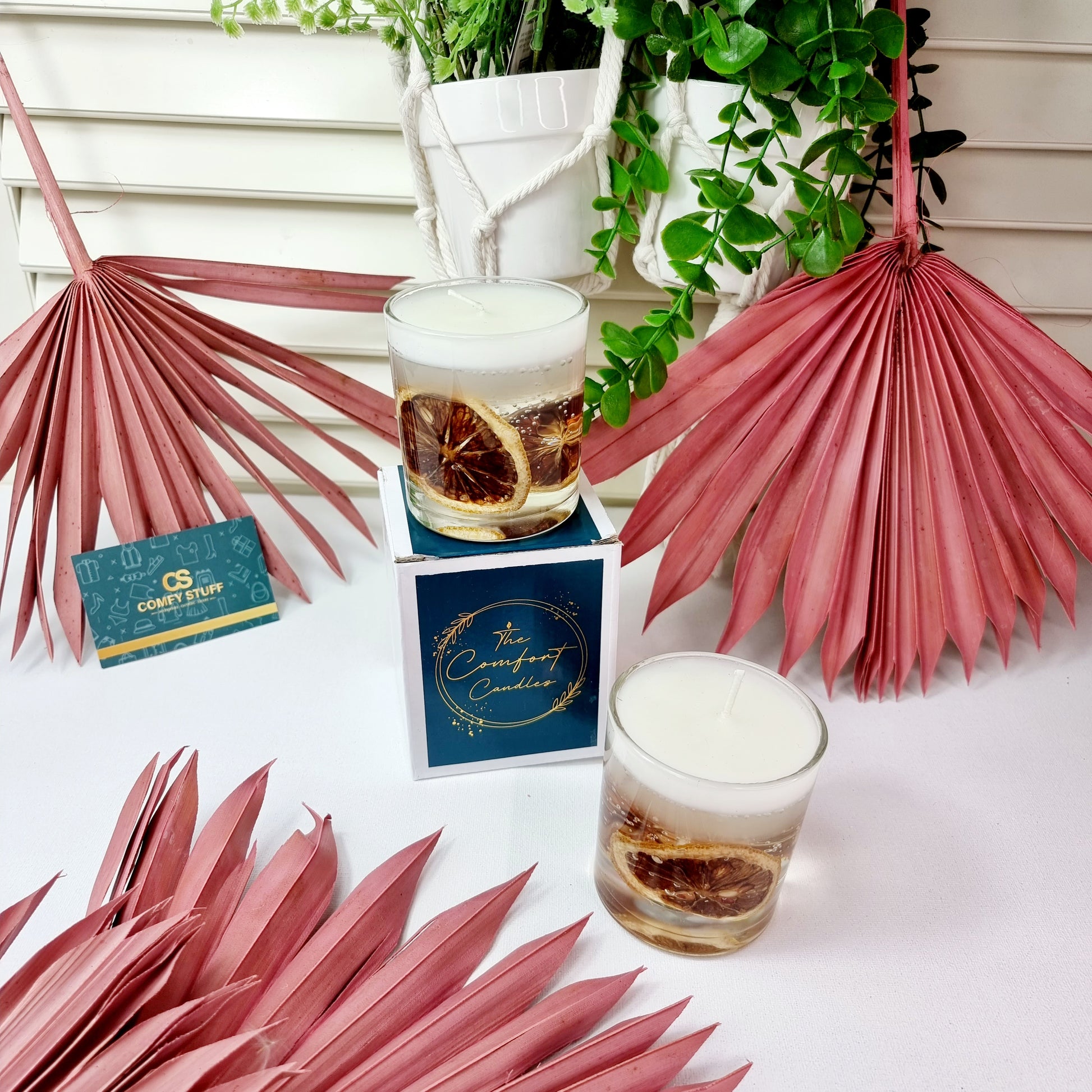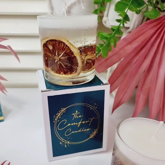 Glass-Scented Dried Flower/ Lemon Soy Gel Wax Candles.