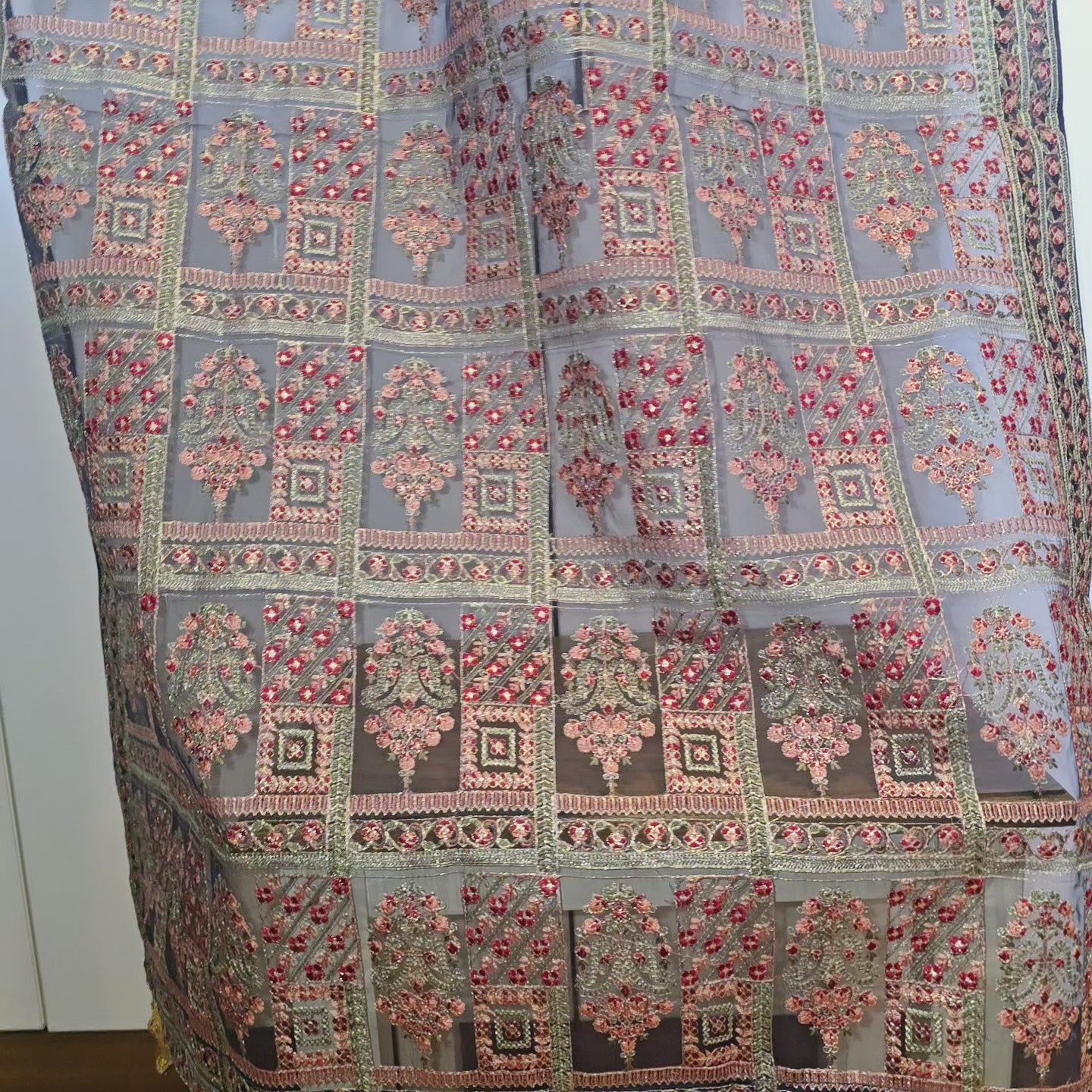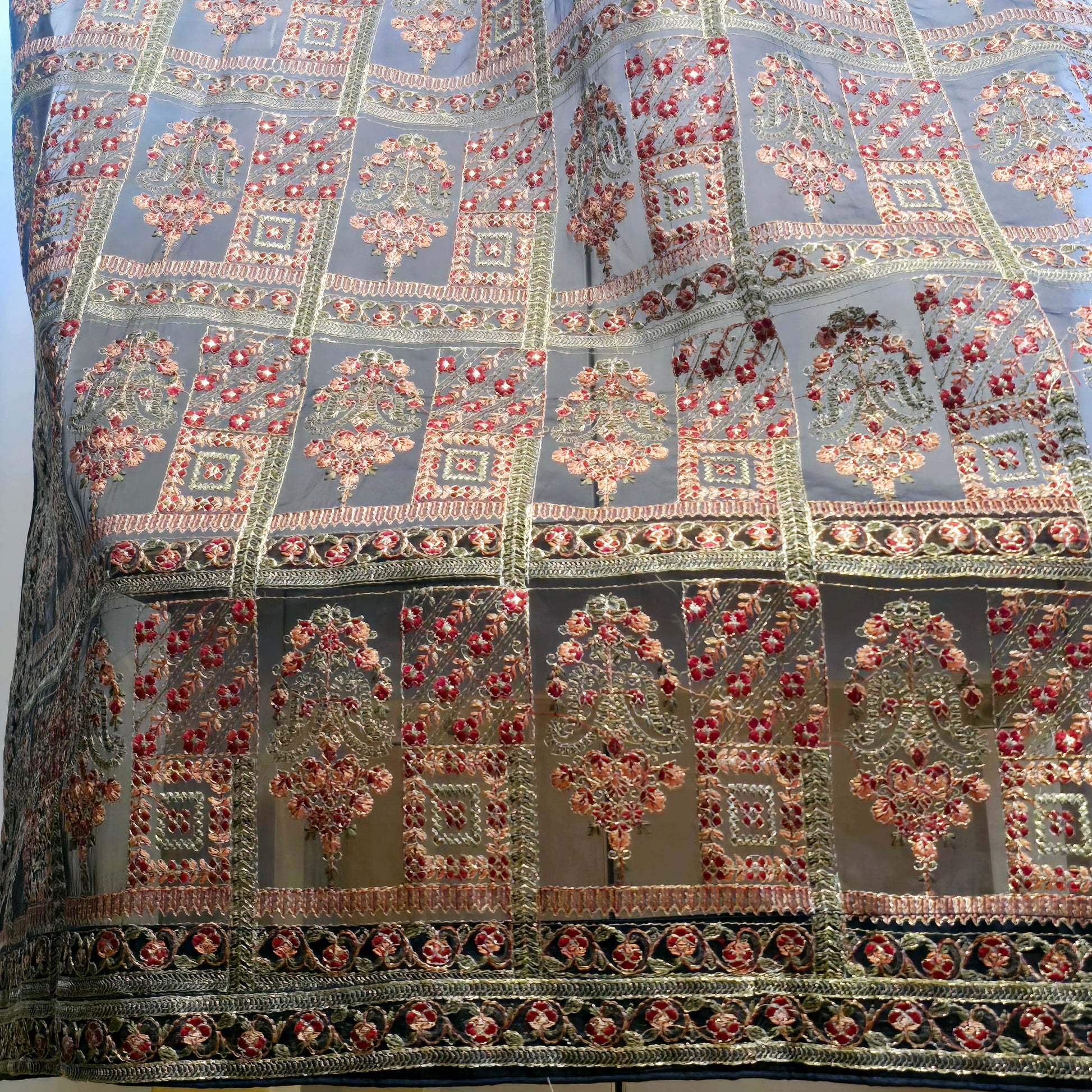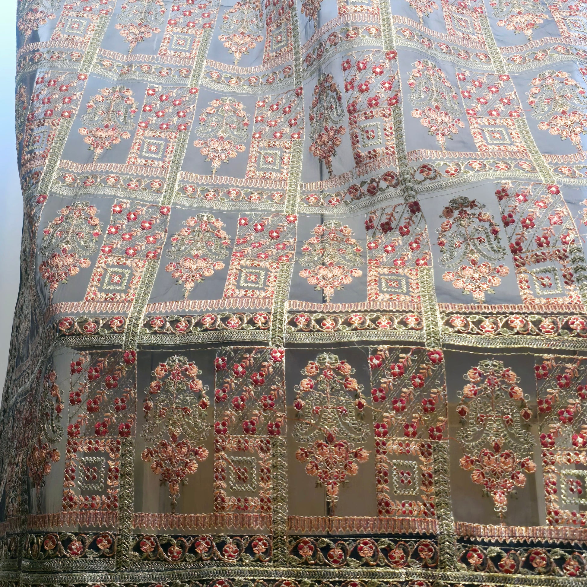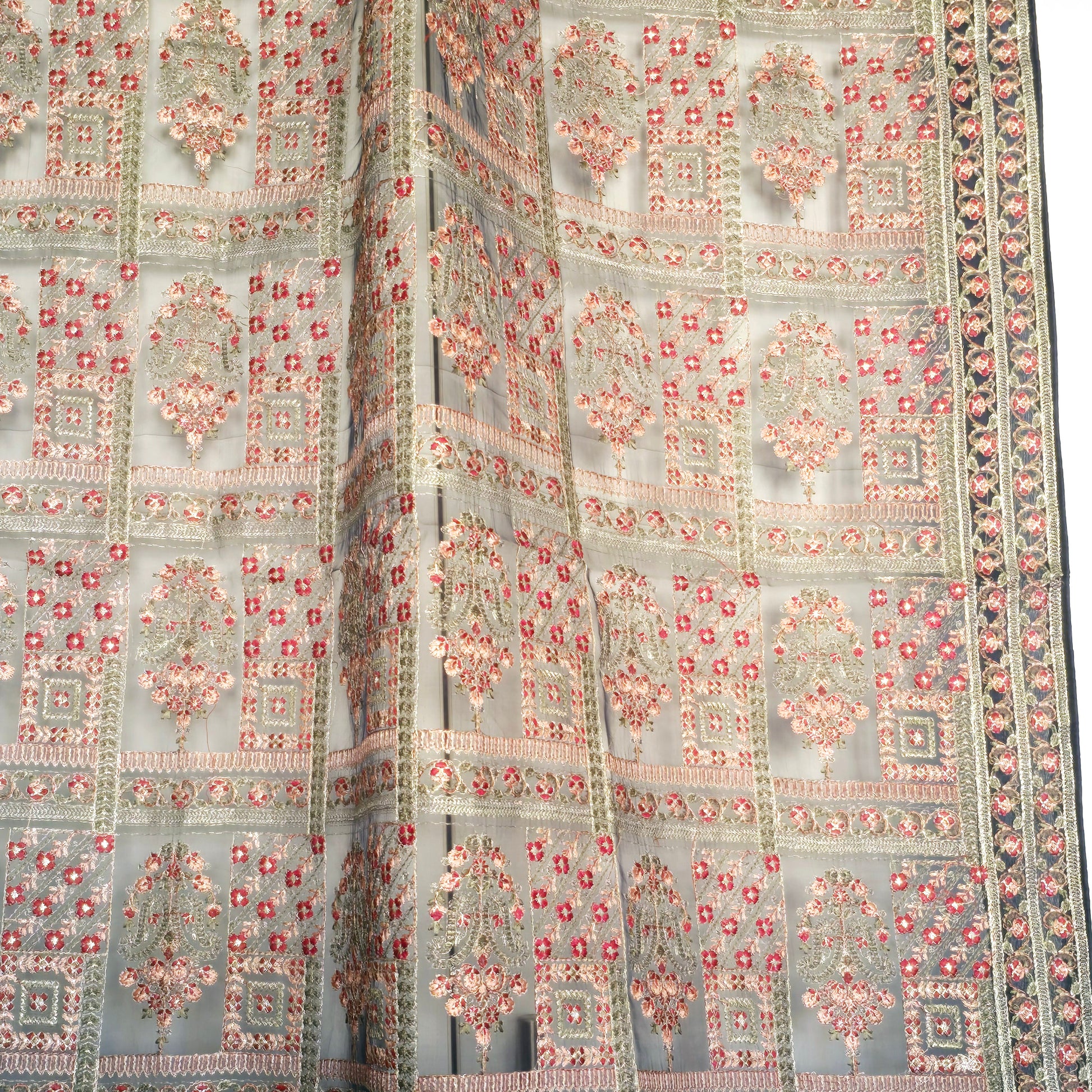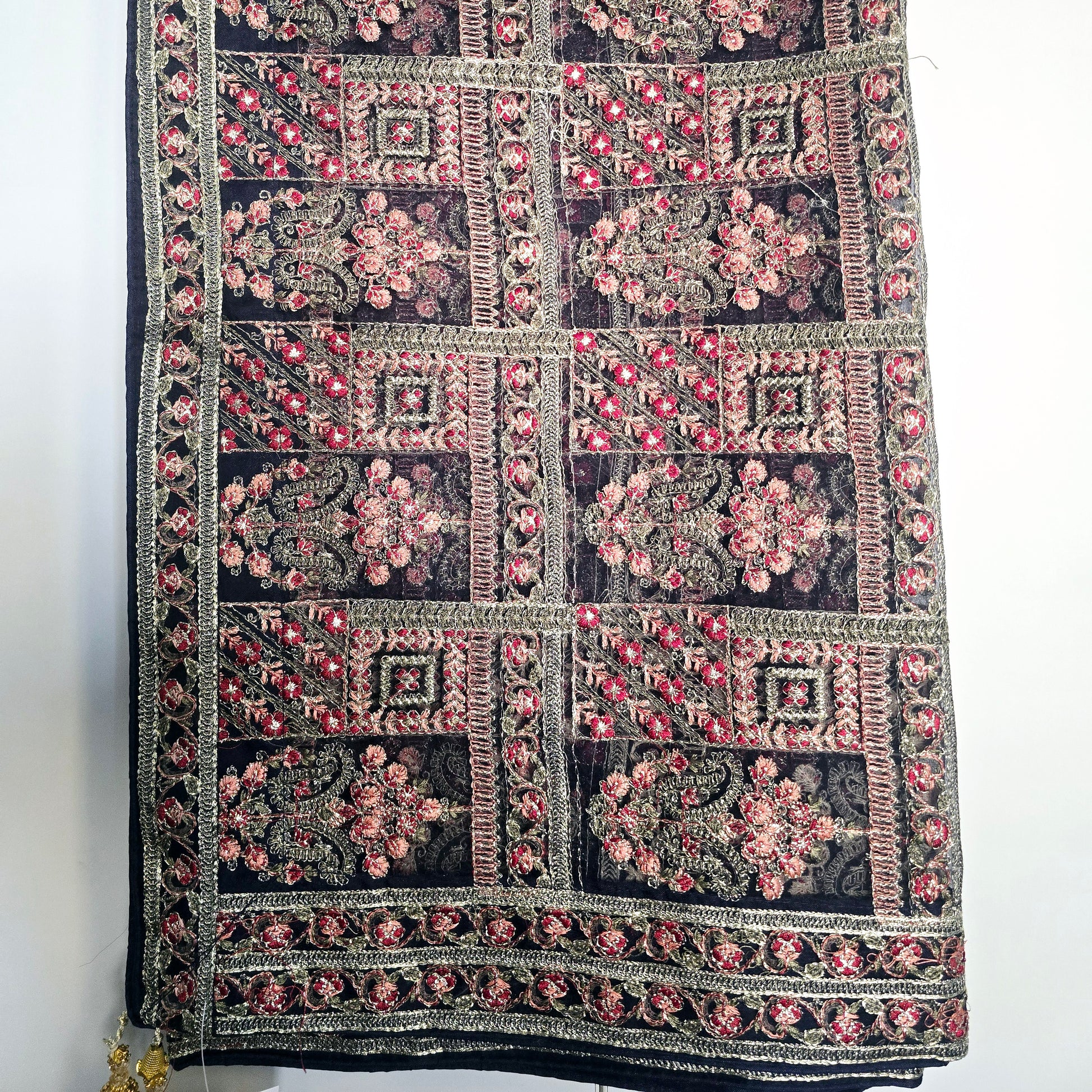 Expertly crafted and adorned with traditional Pakistani embroidery, this 2.5 yard shawl is a must-have for any fashion-forward individual. Made by skilled artisans, this shawl is a beautiful blend of culture and function, elevating any outfit with its intricate design.