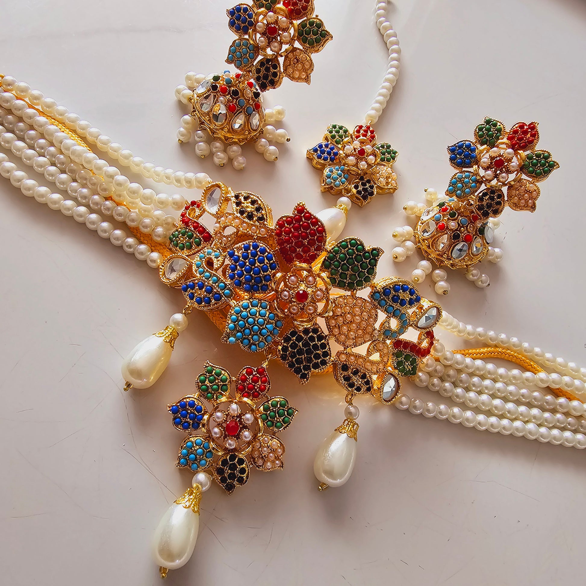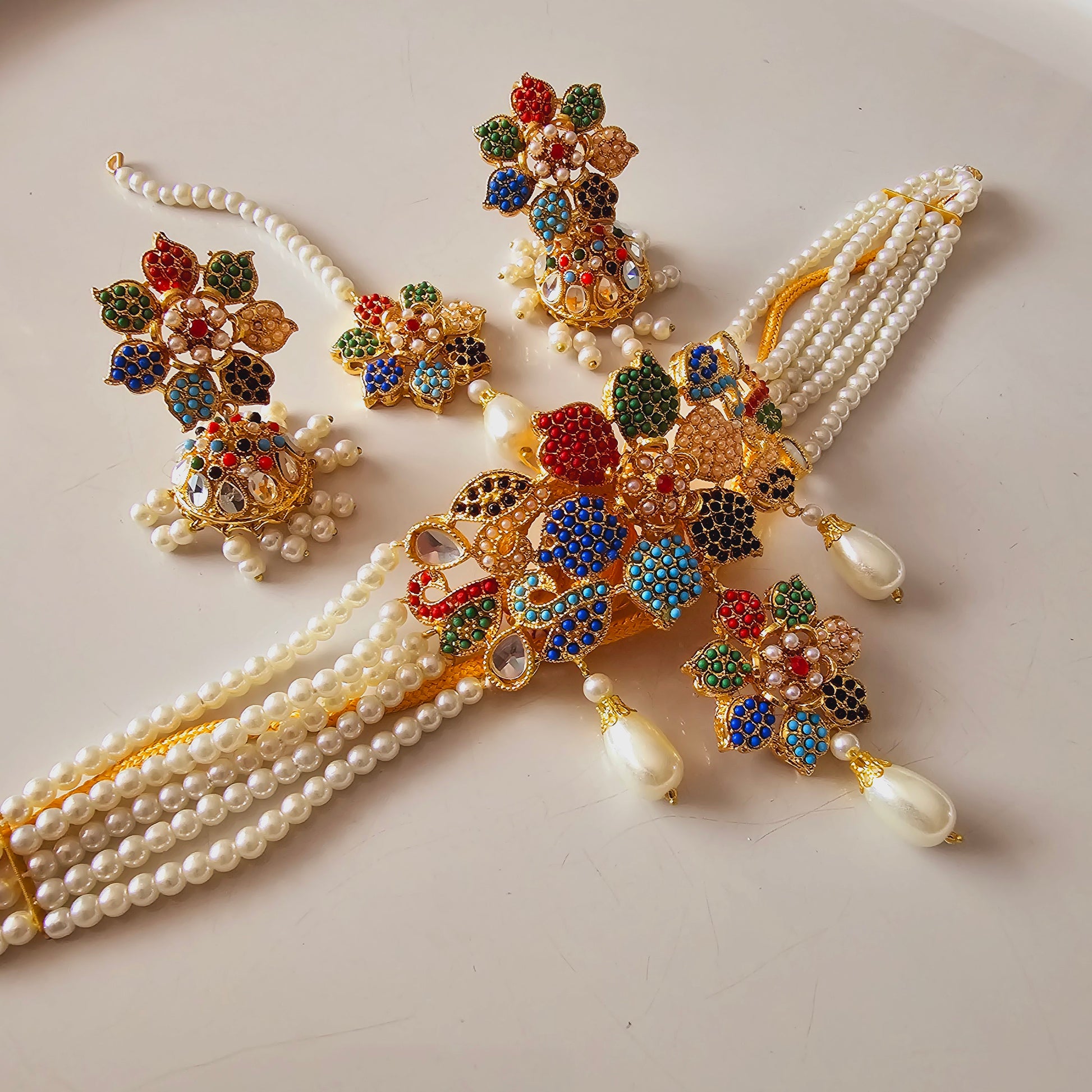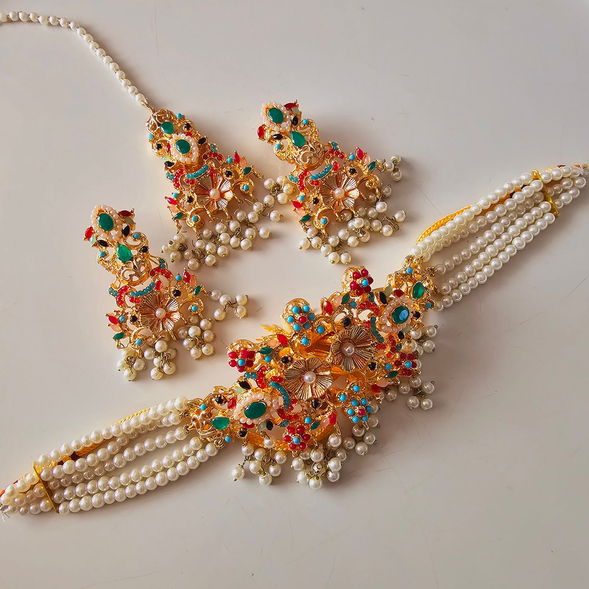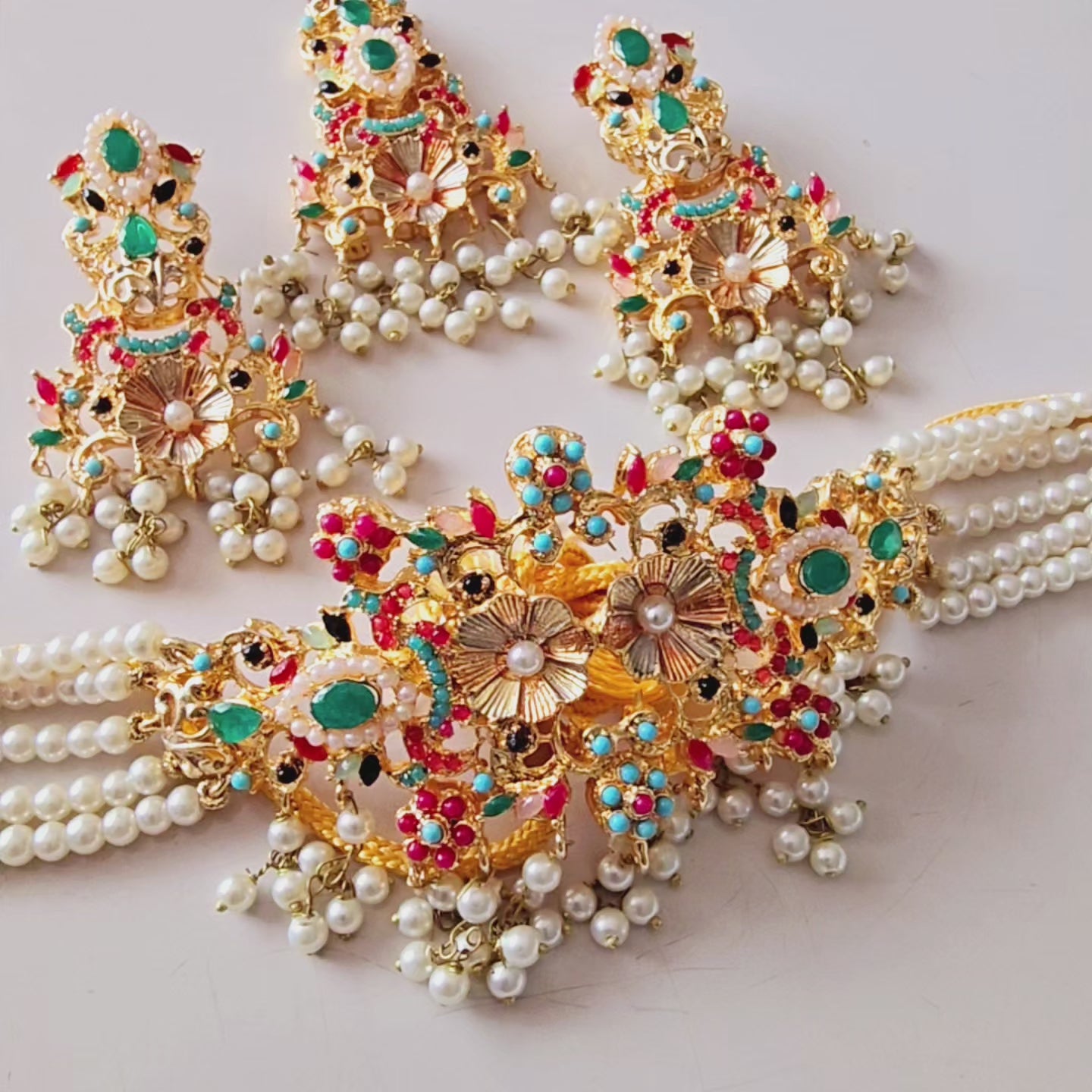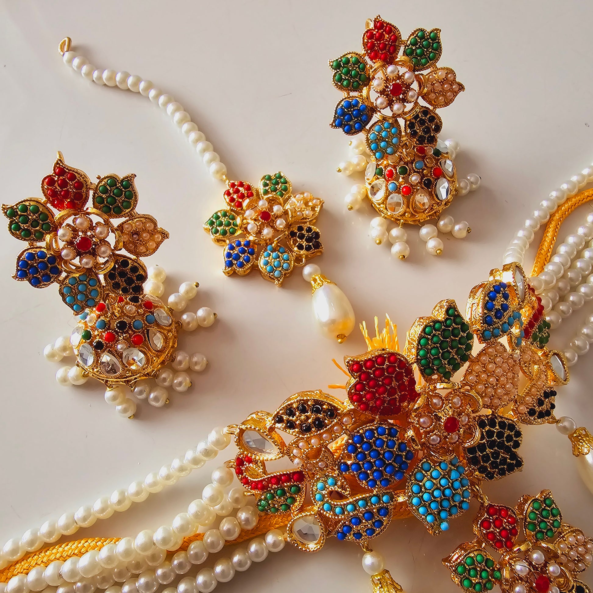 Indian/ Pakistani/ Asian Choker Set || Jhumkas and Teeka Set