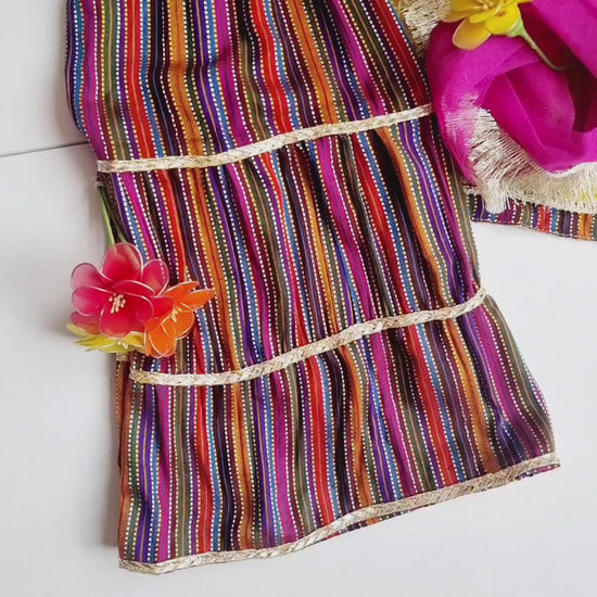 Shalwar (Pants) : Multi Cotton Gharara with Golden trim Lace