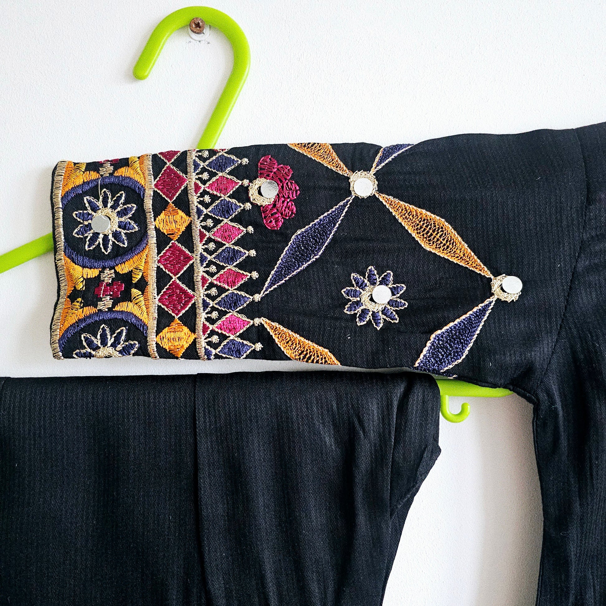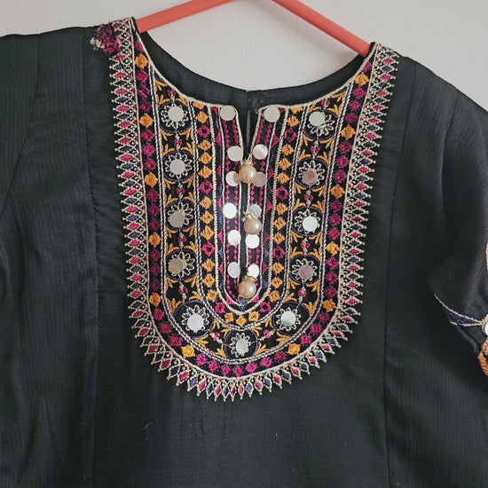 Kameez (Shirt) : Black Lawn Shirt with Sheesha and Thread work