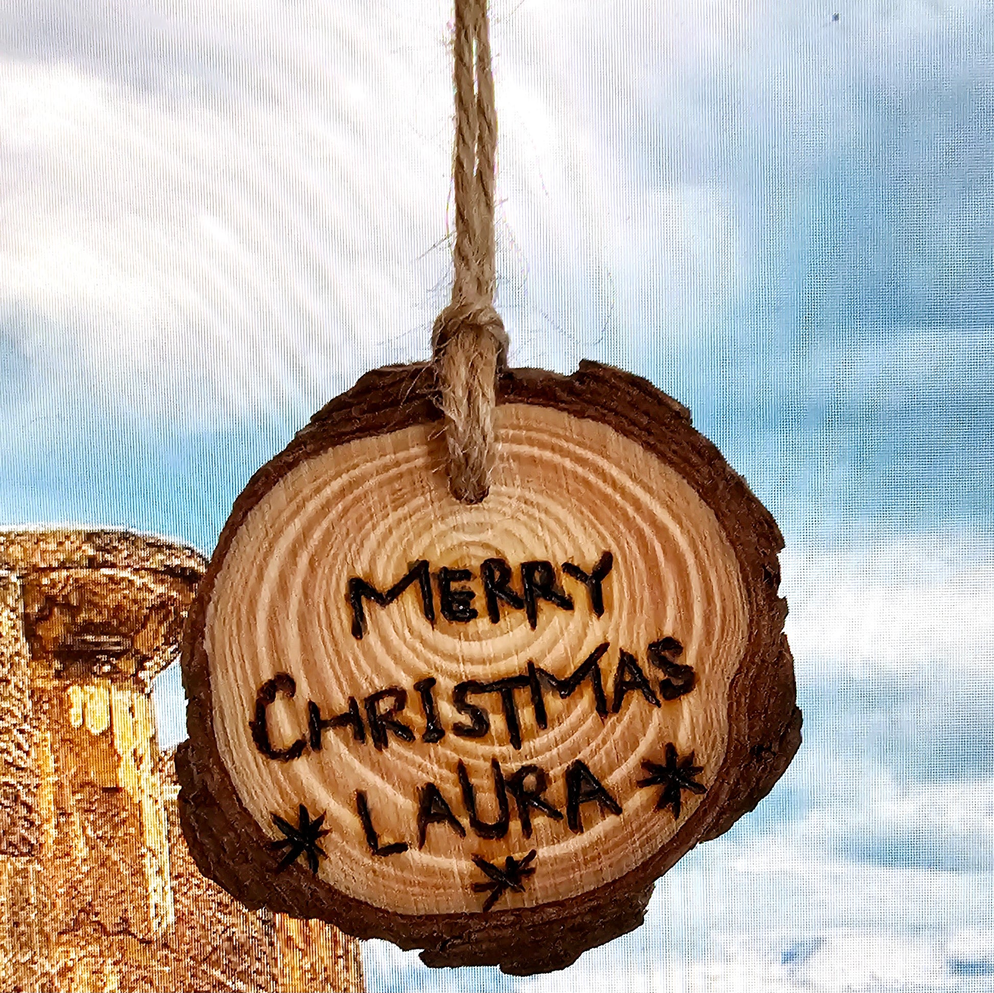 Personalized Name Engraved Wood Slice Christmas Ornament || Engraved Wood Christmas Ornament