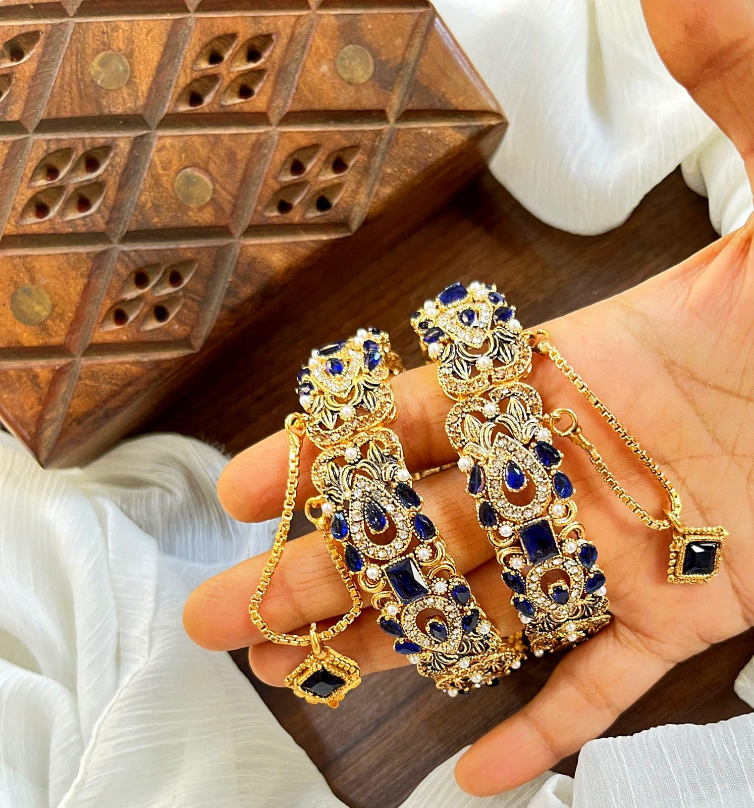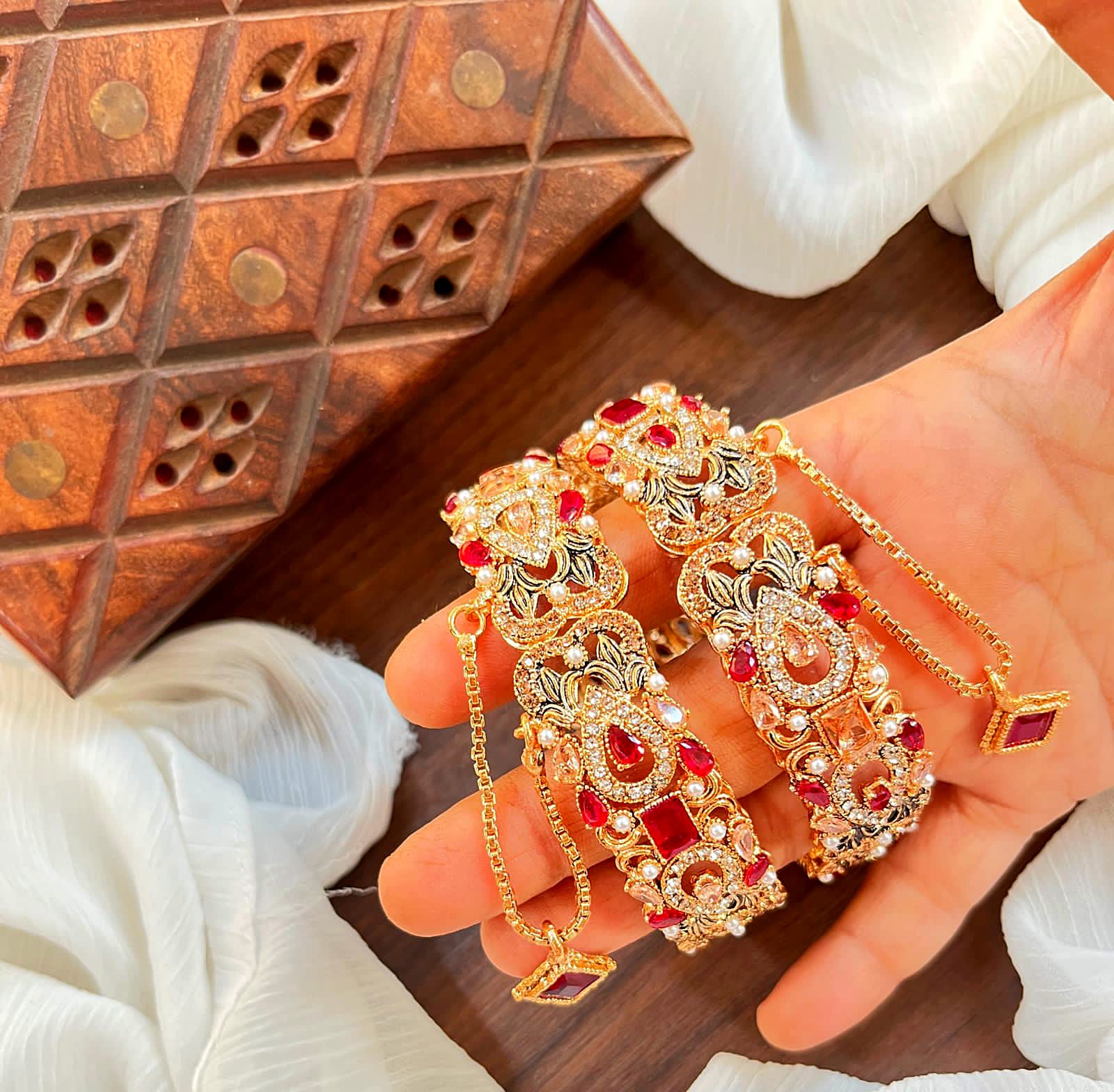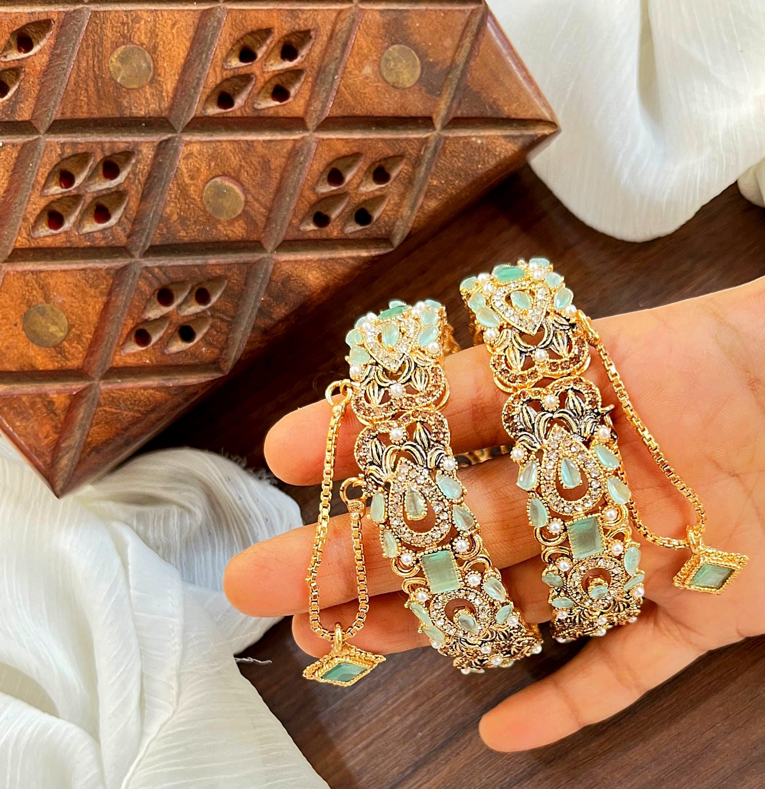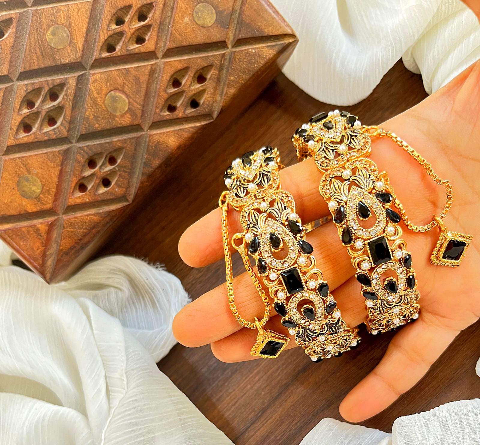 Bangle Openable Kara Set || Gold Plated Kara Pair || Bangles with Zircon Stones