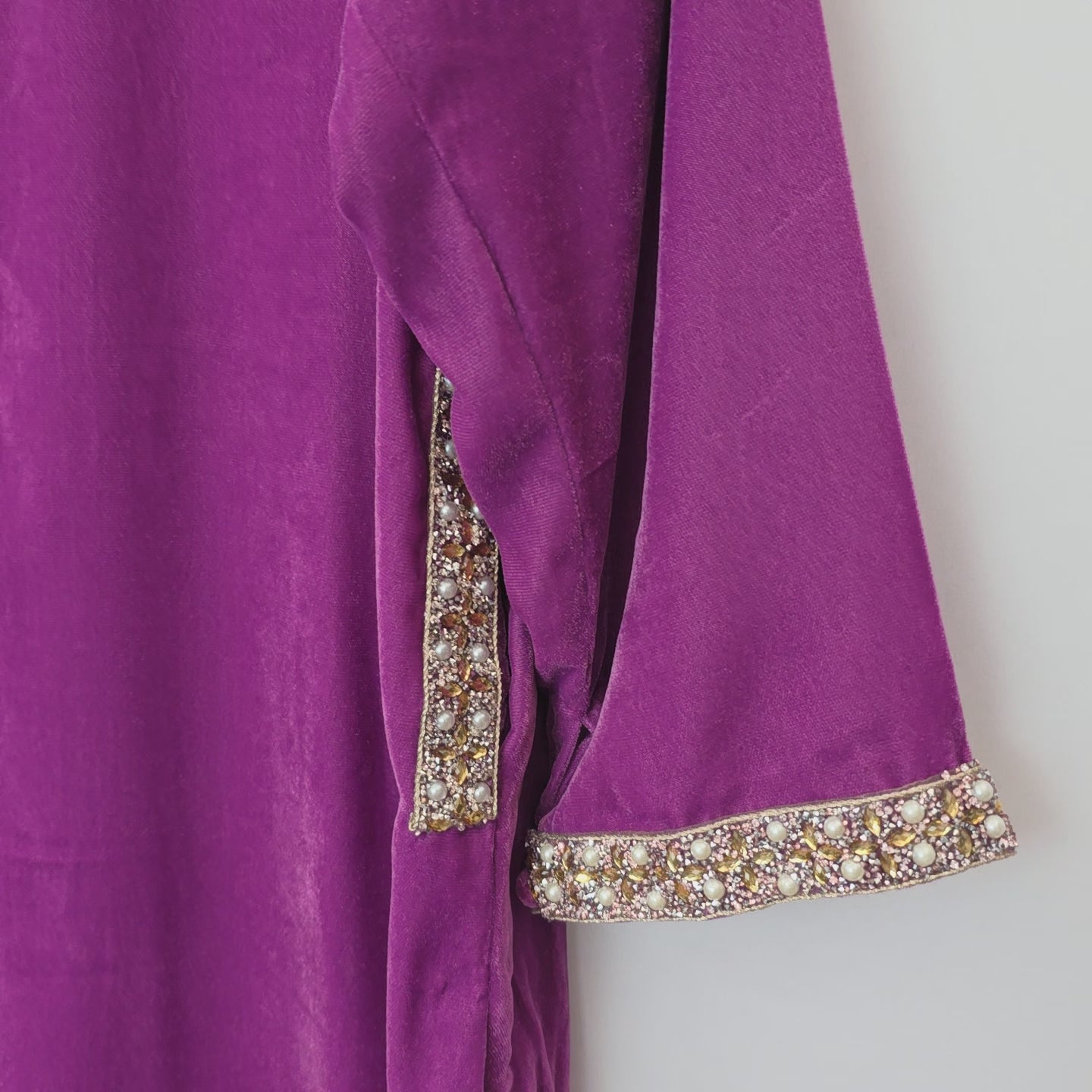 Velvet Kurta For Women - Pink & Golden Embroidered Kurta - Wedding/Party Wear